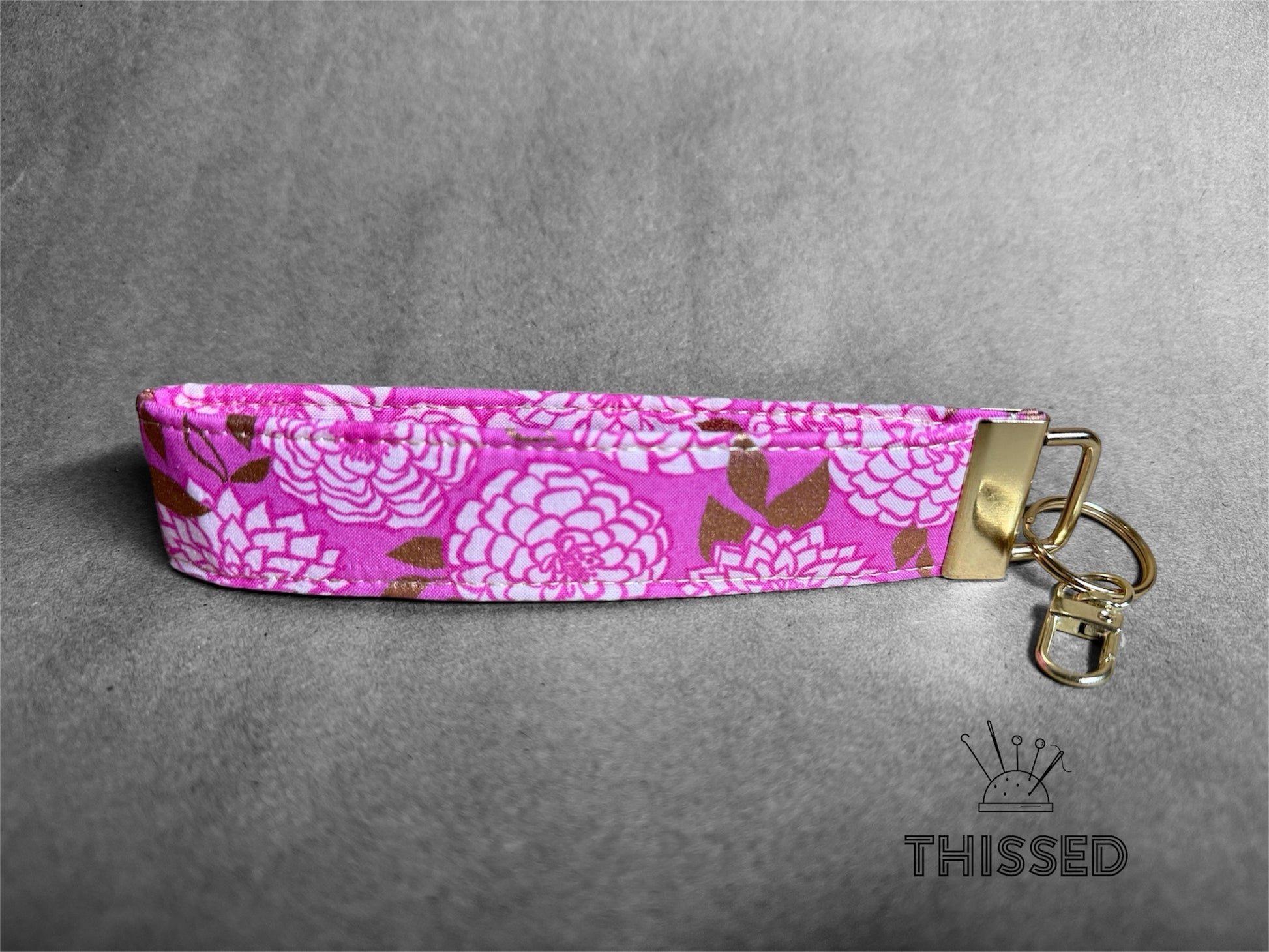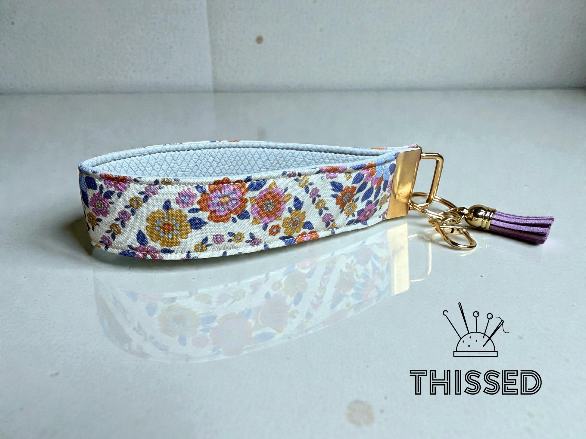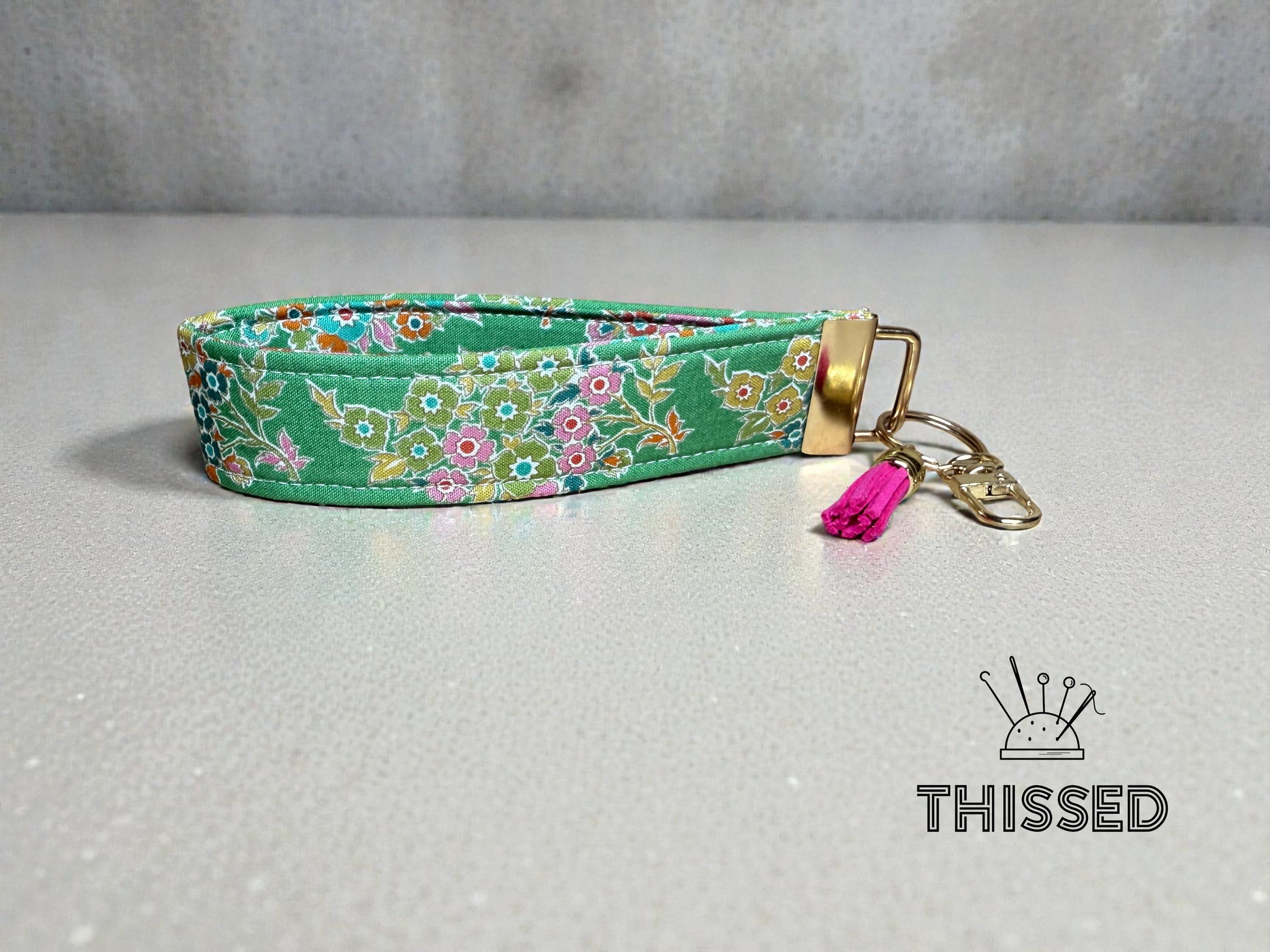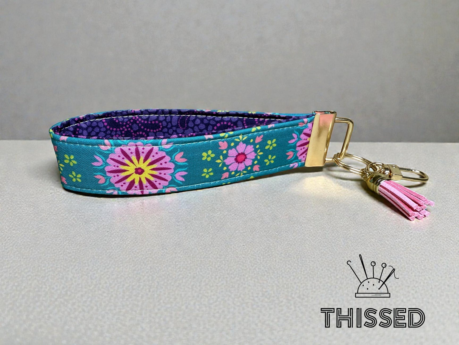 Keys, but make them easy to find. The Thissed TagAlong is sturdy, lightweight, and slips right over your wrist so you can keep your hands free and your keys close. A built-in clasp lets you hook it to bookbags, handbags, lanyards—wherever you need them. Made with eye-catching fabrics, it’s perfect for quick errands, campus life, or just not losing your keys at the bottom of your bag. Simple. Handy. Hard to misplace. 1.25 x 6 in.